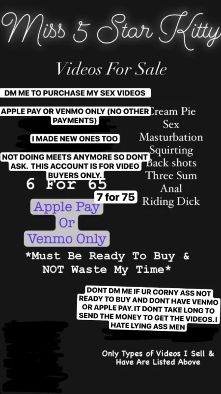 IF WE MET BEFORE HMU IM NOT DOING NO MEETS UNLESS U PURCHASE VIDEOS IMMIEDIATELY PLEASE STOP WASTING MY TIME. DONT LIE ABOUT BUYING VIDEOS IF UR A LIAR AND NOT SENDING THE MONEY OR NOT INTERESTED CANT STAND GROWN ASS MEN LYING IF U DONT BUY VIDEOS BEFORE WE MEET IM BLOCKING APPLE PAY OR VENMO ONLY (NO OTHER PAYMENT) DM ME ON TELEGRAM TO PURCHASE MY SEX VIDEOS (DO NOT HMU FOR MEETS. NOT DOING MEETS) IF YOU WANNA MEET YOU MUST BUY 7 VIDEOS FOR $75 FIRST. MY RULES ๐. I DO NOT OFFER FACE TIME CALLS AT THE MOMENT SO PLEASE DONT Ask TYPES OF VIDEOS I HAVE: SQUIRTING MASTURBATION SEX 3SUM GANG BANG CREAMPIE BACKSHOTS RIDING DICK ANAL 6 For $65 7 For $75 8 For $85 9 For $94 https://t.me/TheRealTsunamiMami Download telegram and add me so i can send u the videos there